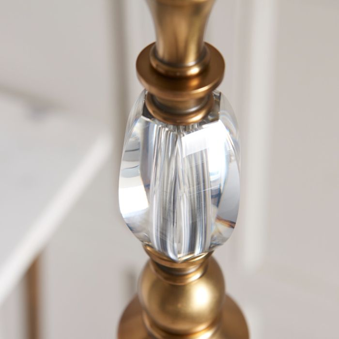 Beautifully finished in antique brass with K9 crystal glass detailing, this lamp has a truly regal look.